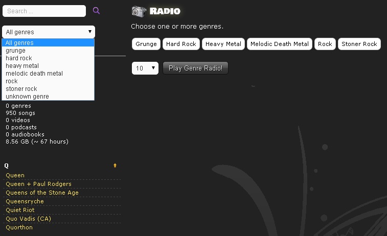 In the statistics box in the left you see 0 genres all the time.