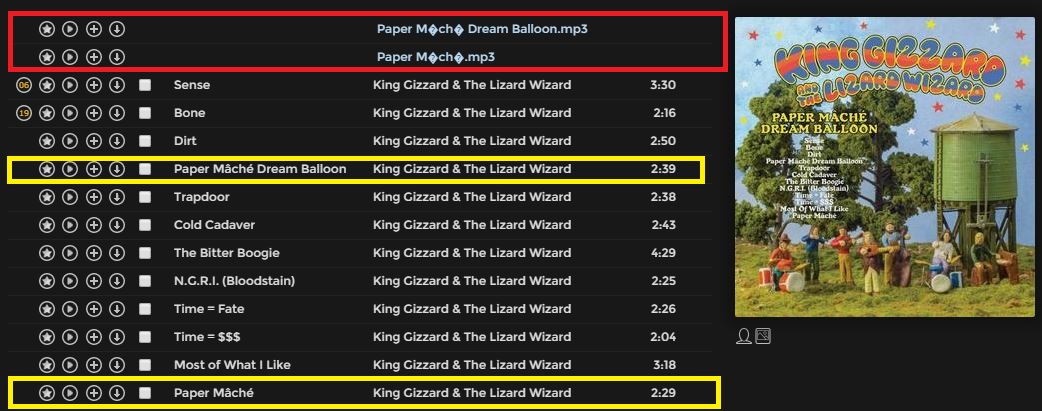 In the attached screenshot, there are two songs that are the example. The ones boxed in red are processed by Musicbrainz and still contain the special characters in the file name. The ones in yellow are ones copies of those exact files with only the filenames edited to remove the special characters. I also had to edit the Album folder as it contained those special characters as well. When it contained special characters I could not open it in Madsonic.