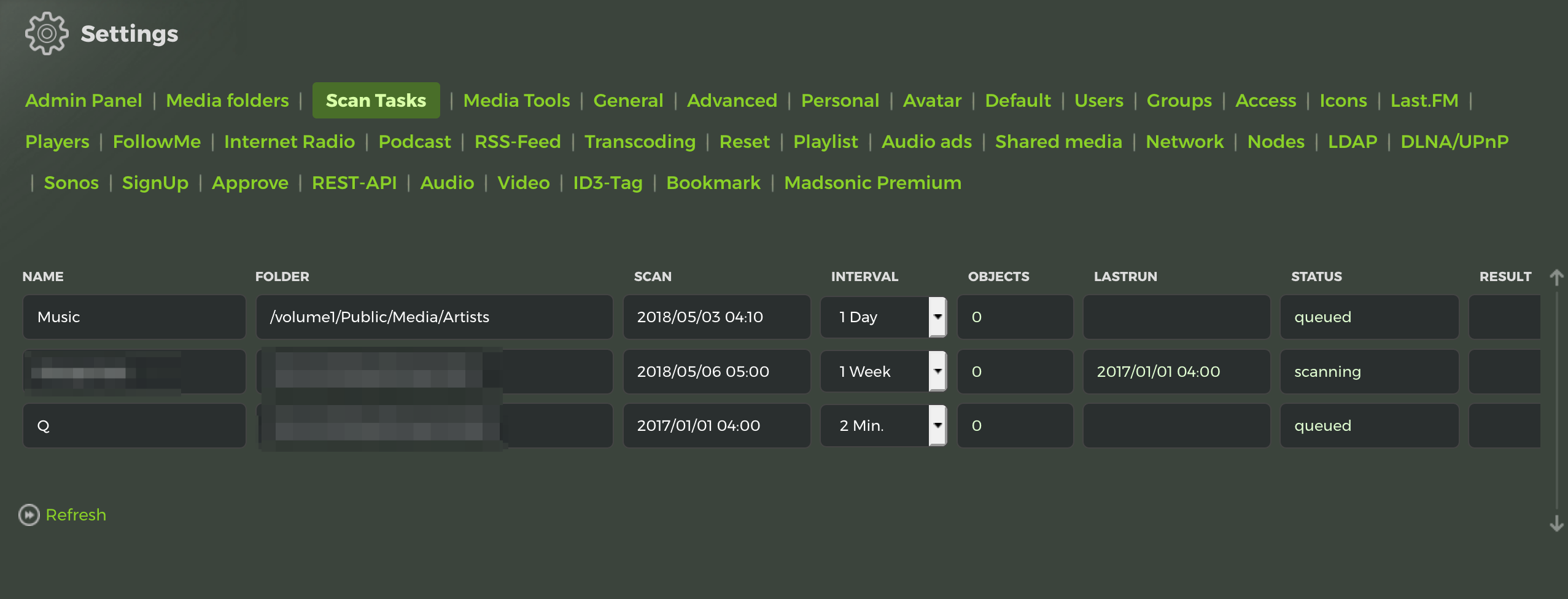 1st line, automaticy by madsonic installation generated media folder, interval 1day