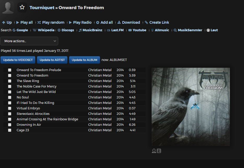 If I hit any one of the buttons (Videoset, Artist or Album), I get this: