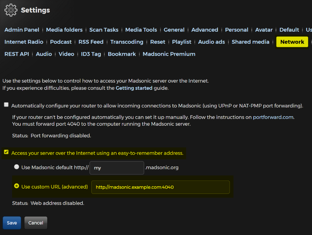 I guess that there is a problem with the madsonic url.. i don´t know where to change it.. can any1 help me out here? do you need any more information?