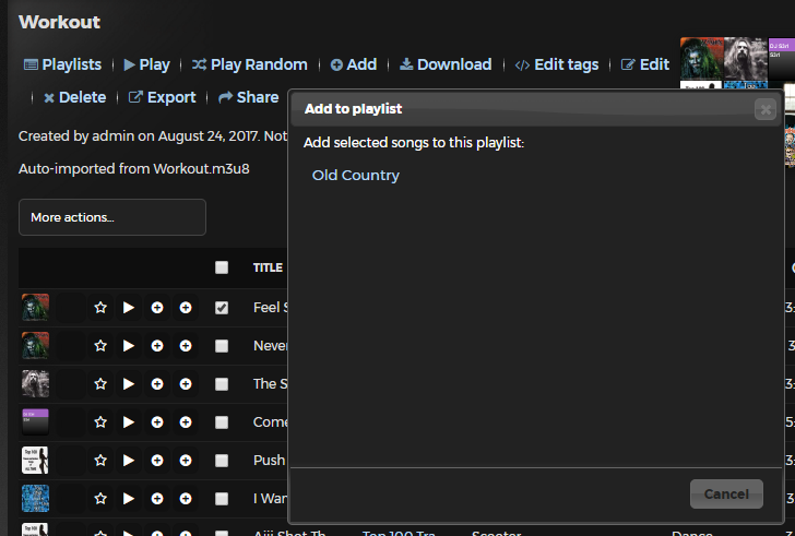 9. Go to any list of tracks (example: view an album), and then click checkbox by a song.