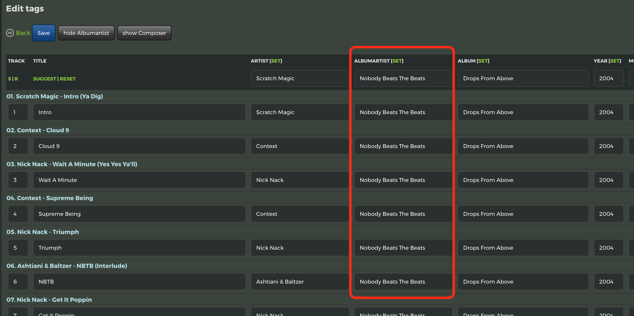 i tried setting the same album name but its creating albums with a single track in them (each artist track as a standalone album)