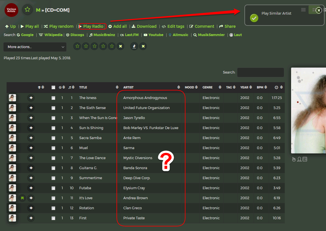 "Playing Similar Artists" (and I'm asking myself: similar artist of WHOM on that album do you mean? of all? or just the first one. be precise damn computer!)