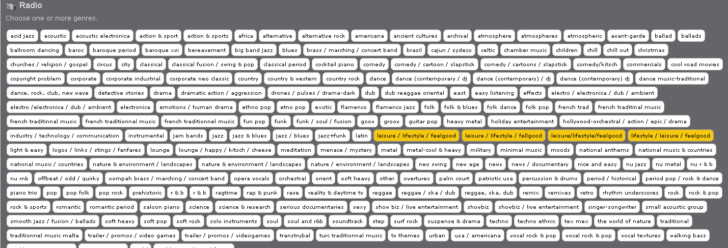 It would be nice to group several genres together certainly the ones with the same name