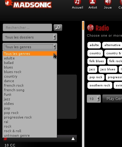 And I should point out that when using accented characters in the music genres it works but when you click on the radio button and you choose one kind containing an accent when you click the play button nothing appears in the playqueue.